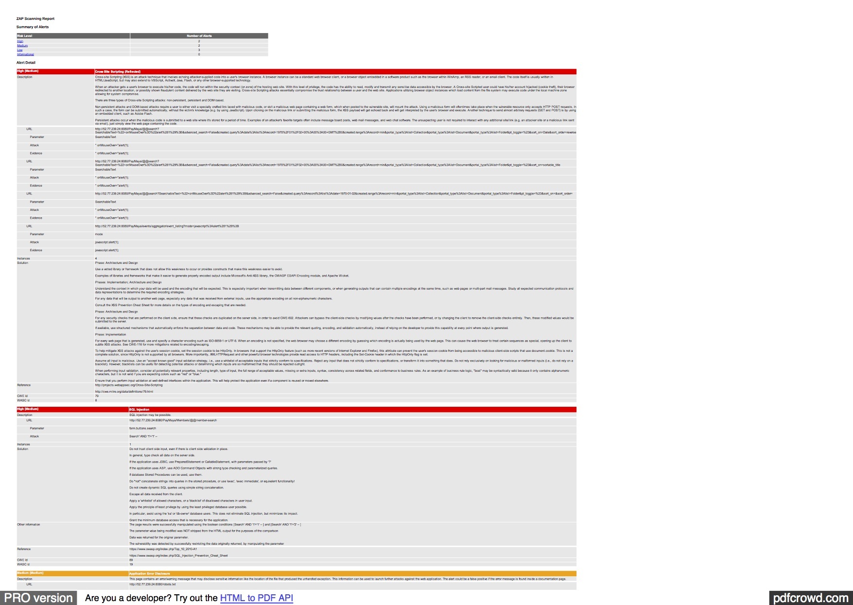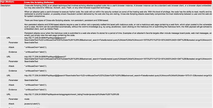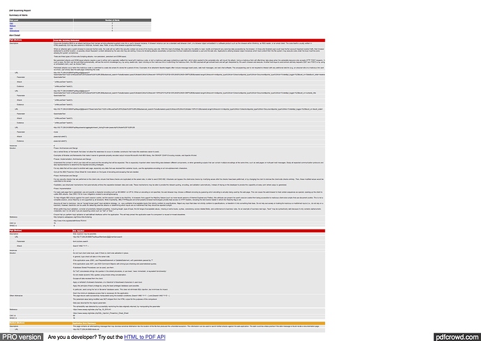 Please see below the report that generated in OWASP ZAP.