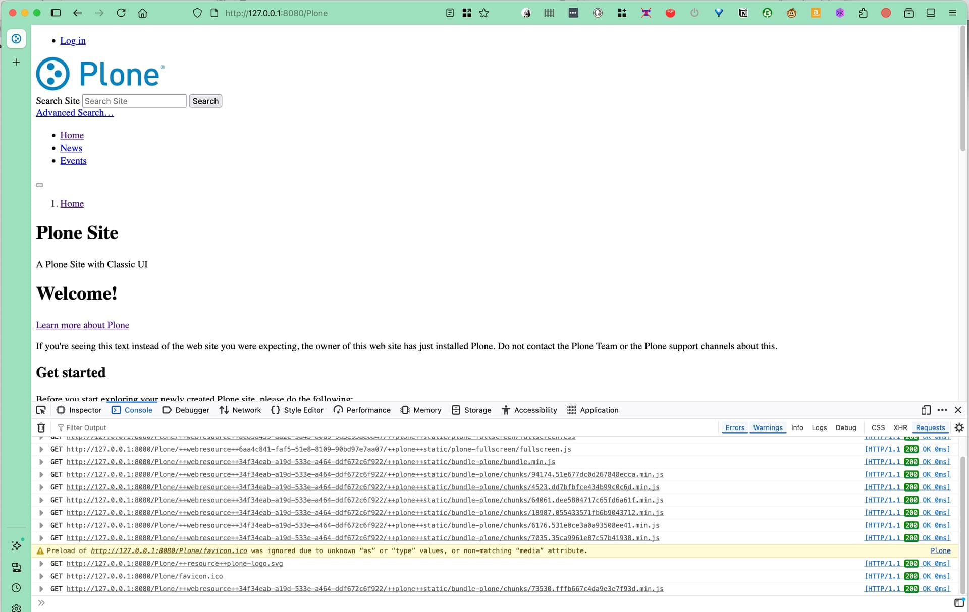 In Safari, the favicon preload is an error (<link rel=preload> cannot have the empty string as 'as' value). In Firefox, that is classified as a warning.