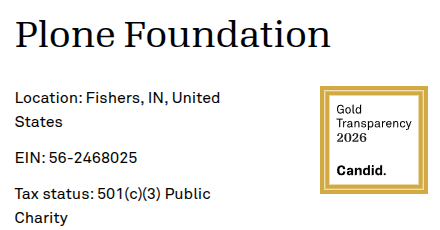 This week, the Plone Foundation was awarded the Gold Seal of Transparency for 2026 by Candid, even further testament to our open governance, accountability, and trustworthiness as a nonprofit.